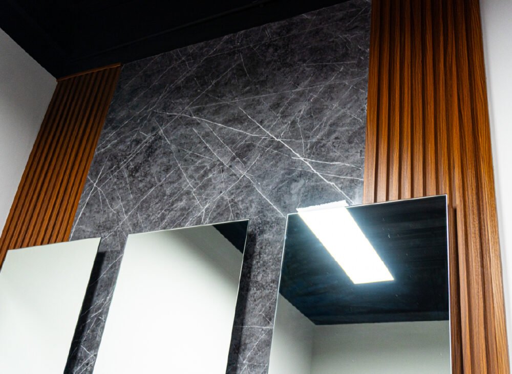 Diseño interior con instalación de techo, mármol y lambrín decorativo