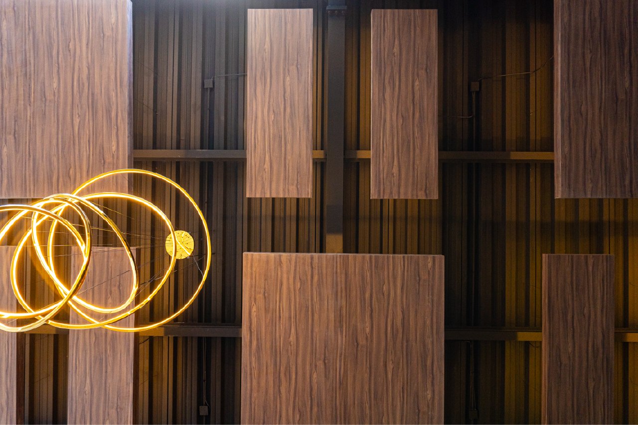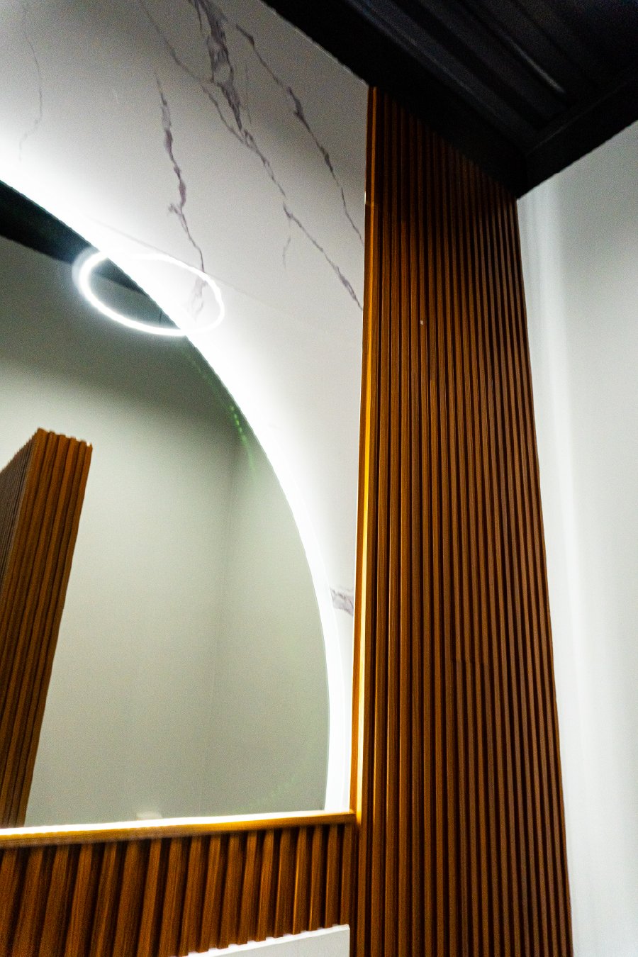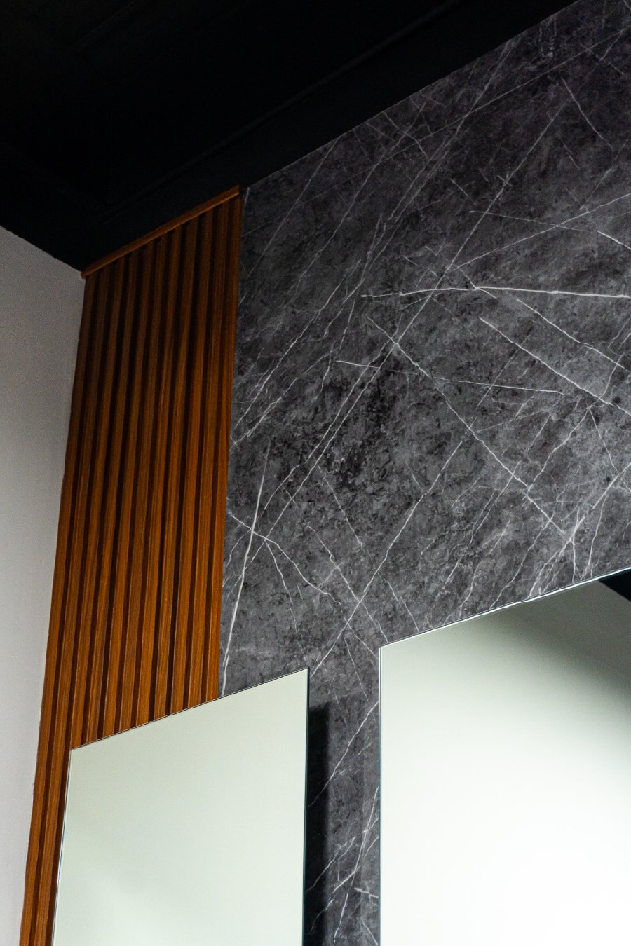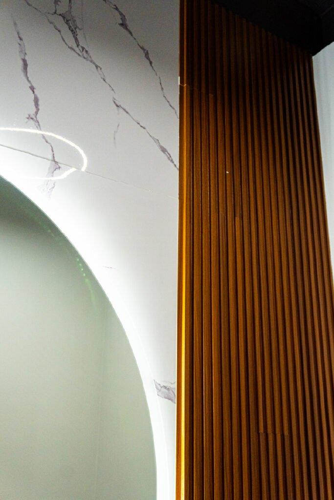 Diseño interior con instalación de techo, mármol y lambrín decorativo