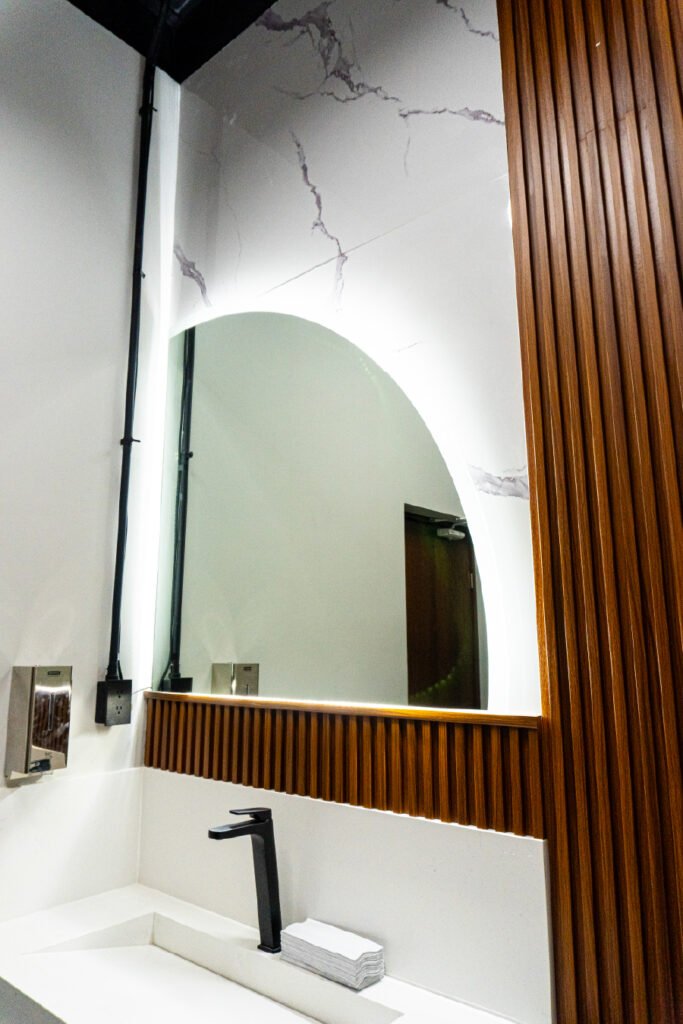 Proyecto integral de interiores para Aceros Toro, que incluye la instalación de techo industrial, aplicación de distintos tipos de mármol y colocación de lambrín decorativo. El resultado combina funcionalidad, resistencia y una estética moderna, elevando la imagen del espacio con acabados de alta calidad y soluciones duraderas.